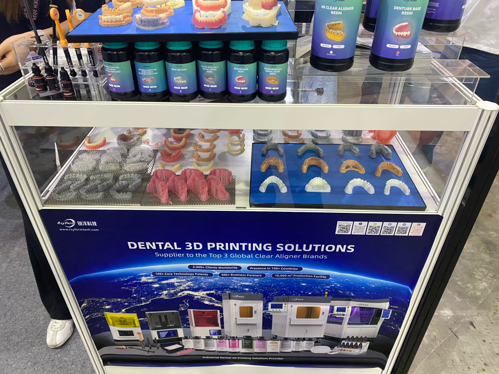 - Industrial-Scale Mass Production: Rayform (锐沣科技) showcased the raw power of 3D printing in mass production. Their focus is on high speed, batch processing, and automation. Rayfong addresses the paradox between personalized customization and low-cost scaling. By automating the flow, complex products like clear aligners and implant models can be delivered rapidly, making them highly attractive to large-scale dental institutions seeking high throughput.