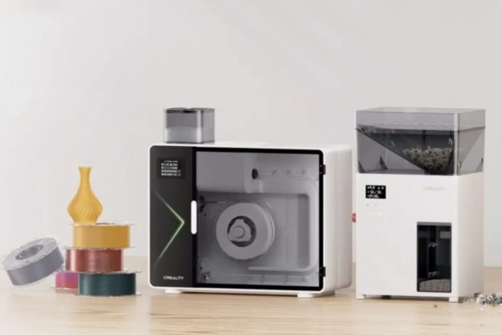 Recently, Creality released a proprietary 3D printing material recycling system on its English official website, including the M1 Filament Extruder and the R1 Shredder. This system is designed to reprocess waste generated during the 3D printing process and convert it back into usable filament, enabling material recycling.