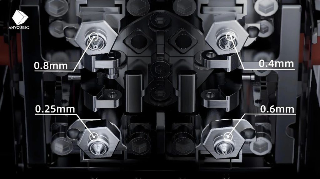 The obvious advantage is that on the same device, a large-diameter nozzle can be used to quickly complete model infill, while a small-diameter nozzle handles surface printing, achieving both efficiency and improved model quality.