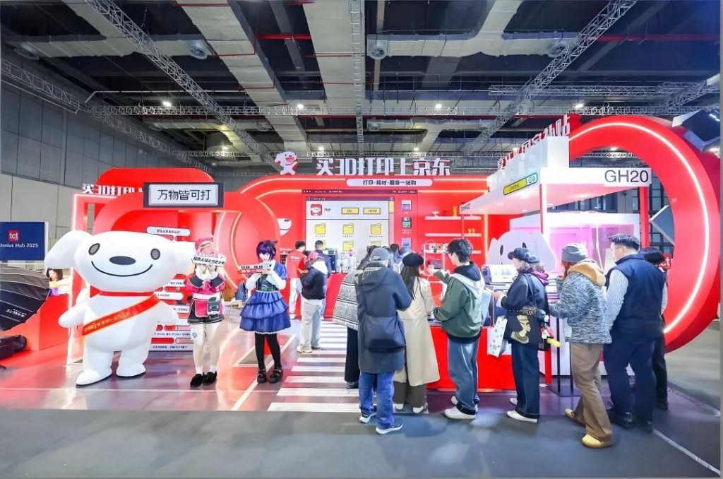 JD became a frequent face at industry exhibitions like TCT and Formnext, sporting slogans like “Buy 3D Printing on JD” and “Print Anything.” They began emphasizing an integrated “one-stop shop” solution for printers, filaments, and services.